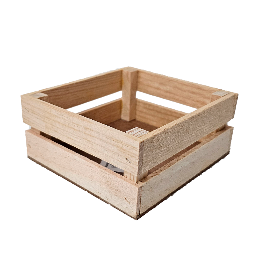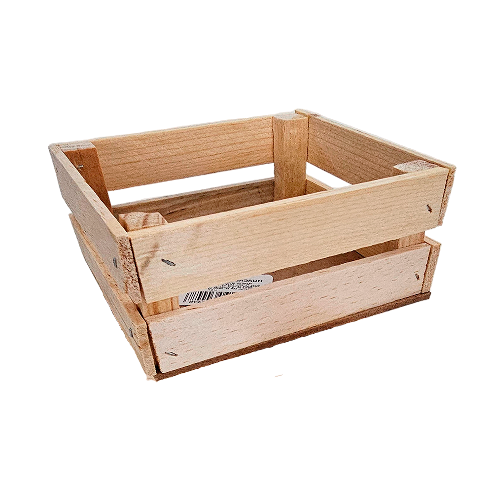 Con un diseño práctico y funcional, este huacal está fabricado en madera de pino, lo que garantiza durabilidad y resistencia. Su tamaño compacto de 12 cm de largo, 6 cm de altura y 12 cm de ancho lo convierte en la opción perfecta para arreglos florales, decoraciones y presentaciones creativas.