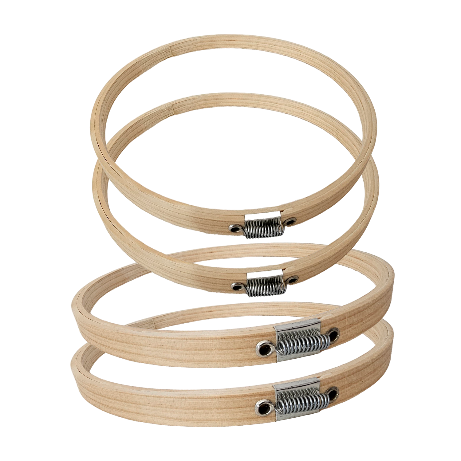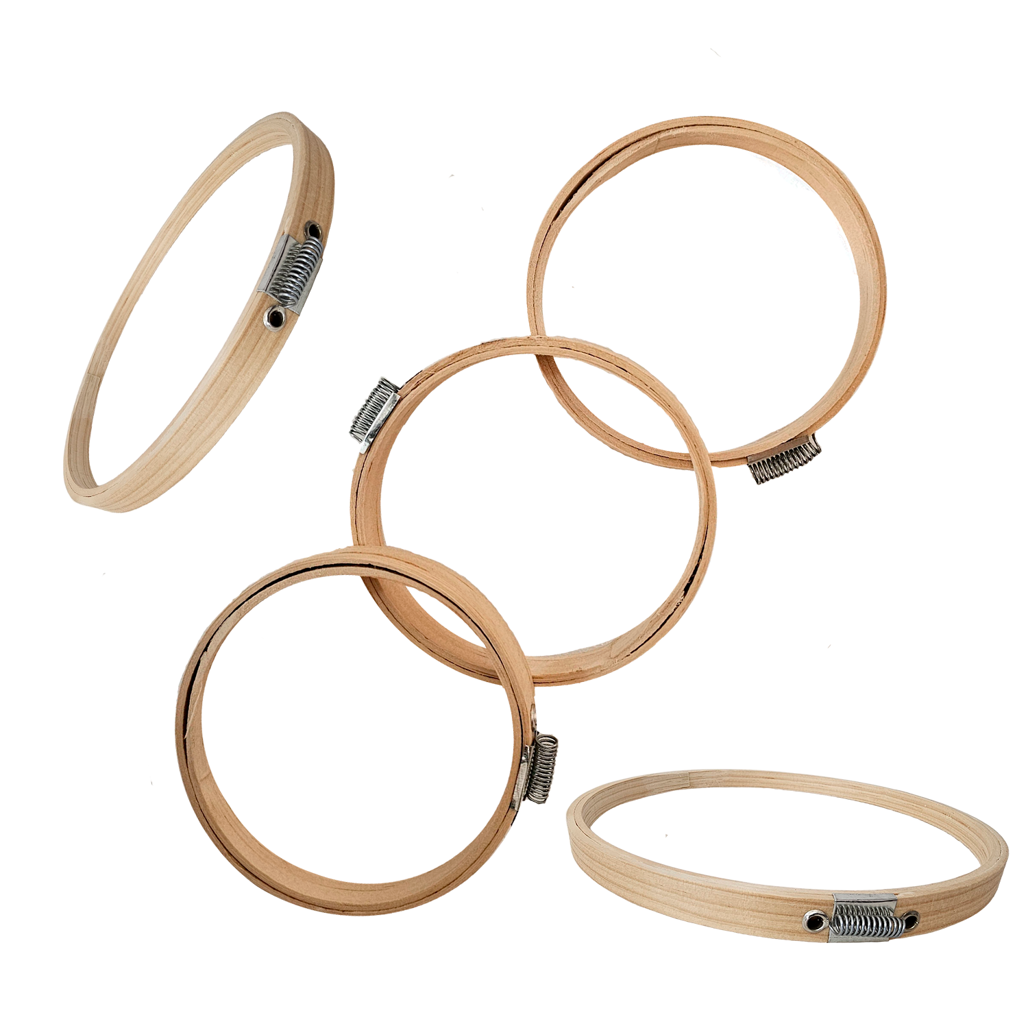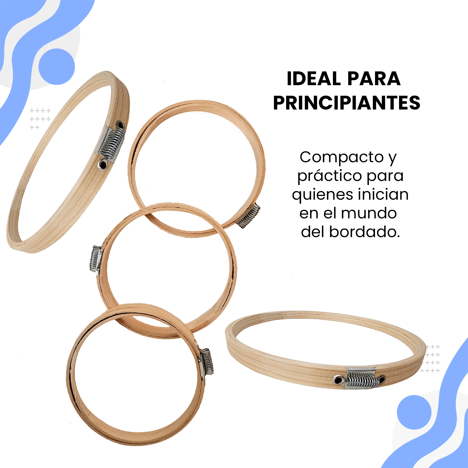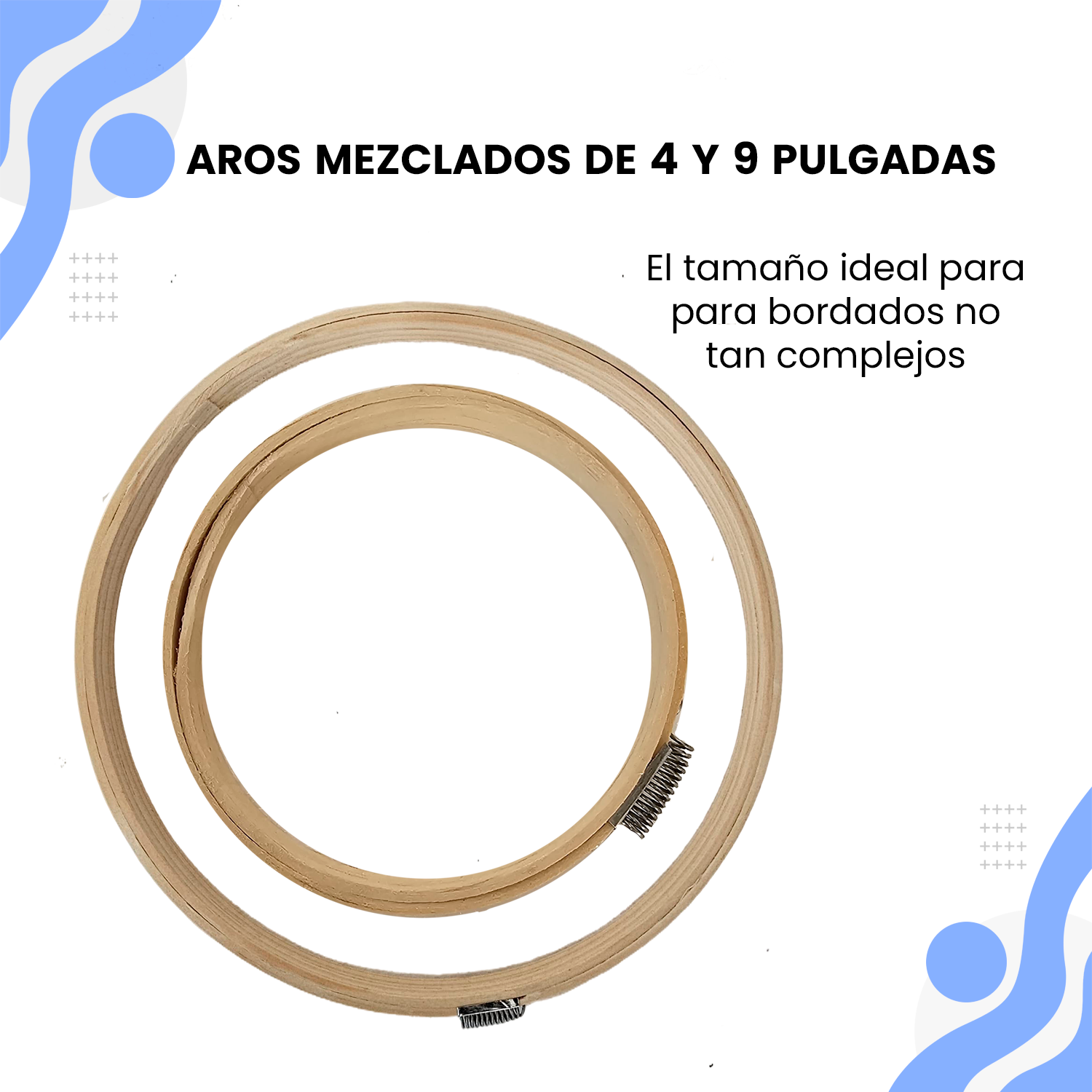 Aros de Bordar Mezclados de 4 a 9 pulgadas, ideales para entusiastas del bordado y artesanos experimentados. Este conjunto incluye aros de diferentes tamaños, permitiendo versatilidad en proyectos de bordado no tan complejos.