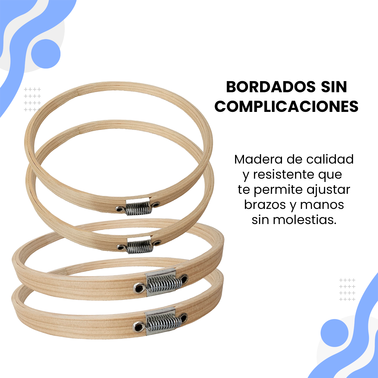 Su forma redonda asegura un ajuste perfecto de la tela, facilitando su manejo y ofreciendo resultados más precisos en cada puntada. Los aros son livianos y fáciles de manipular, lo que brinda comodidad durante largas horas de creación.
