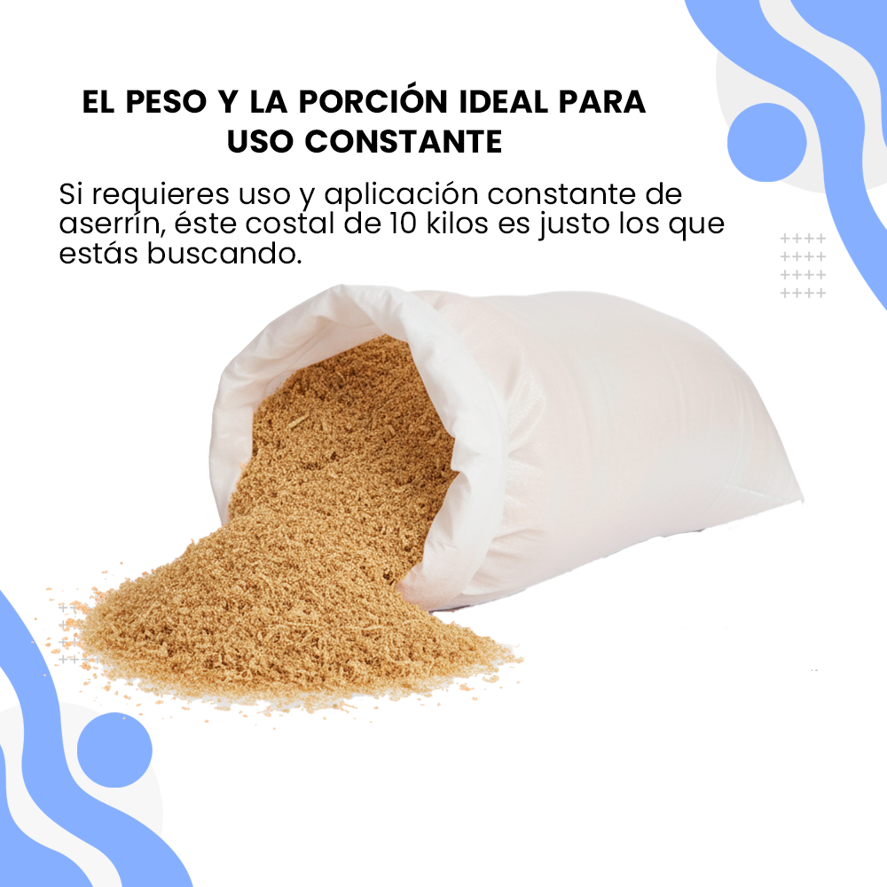 Este aserrín es perfecto para la creación de mulch en jardines, mejorando la retención de humedad y controlando las malas hierbas. También es ideal como material absorbente en espacios donde se requiere controlar la humedad o el desorden. Además, su uso en manualidades y proyectos de bricolaje es una excelente opción para los amantes del DIY.