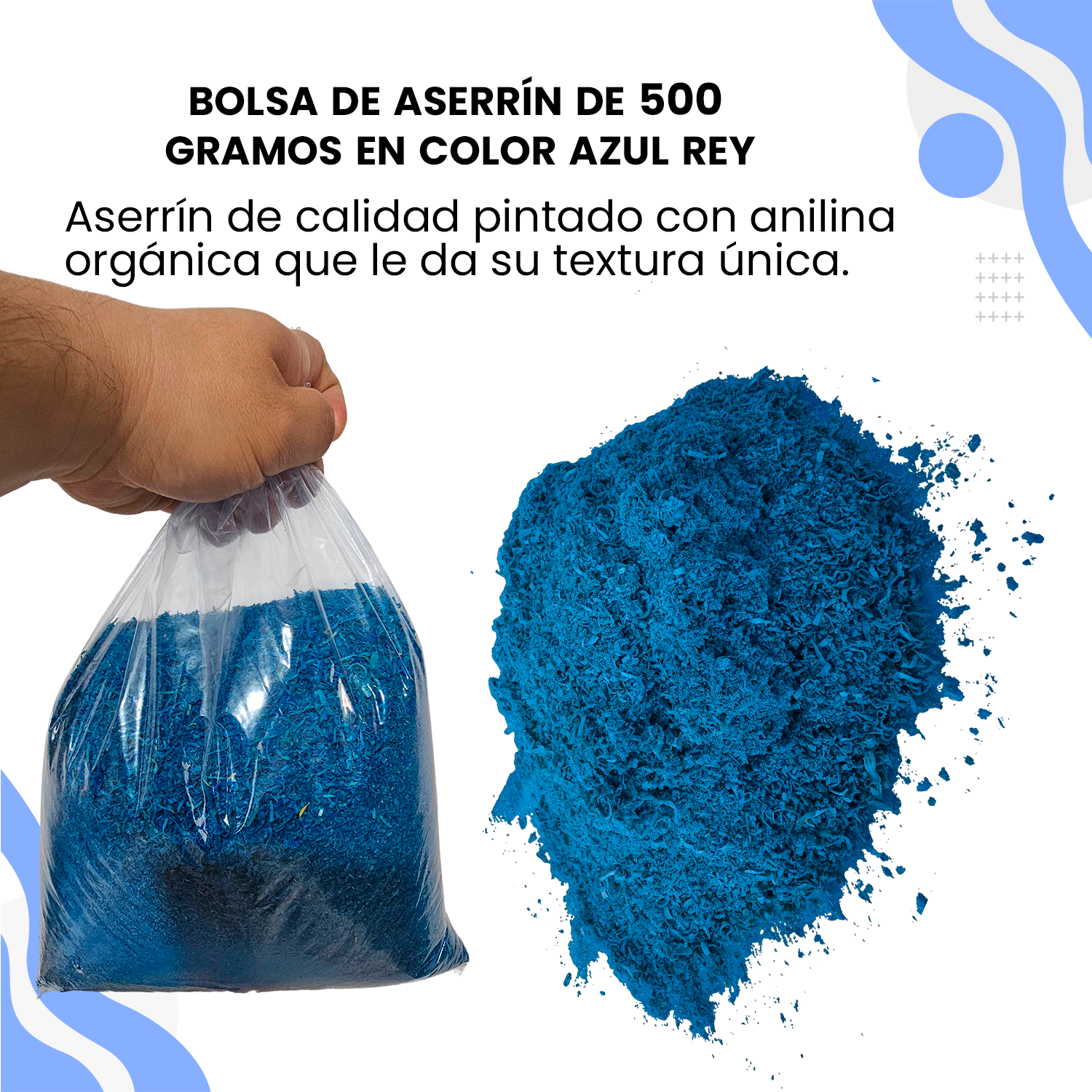 Transforma tus proyectos creativos con el Aserrín Pintado Color Azul Rey, es perfecto para manualidades, decoraciones y actividades educativas.