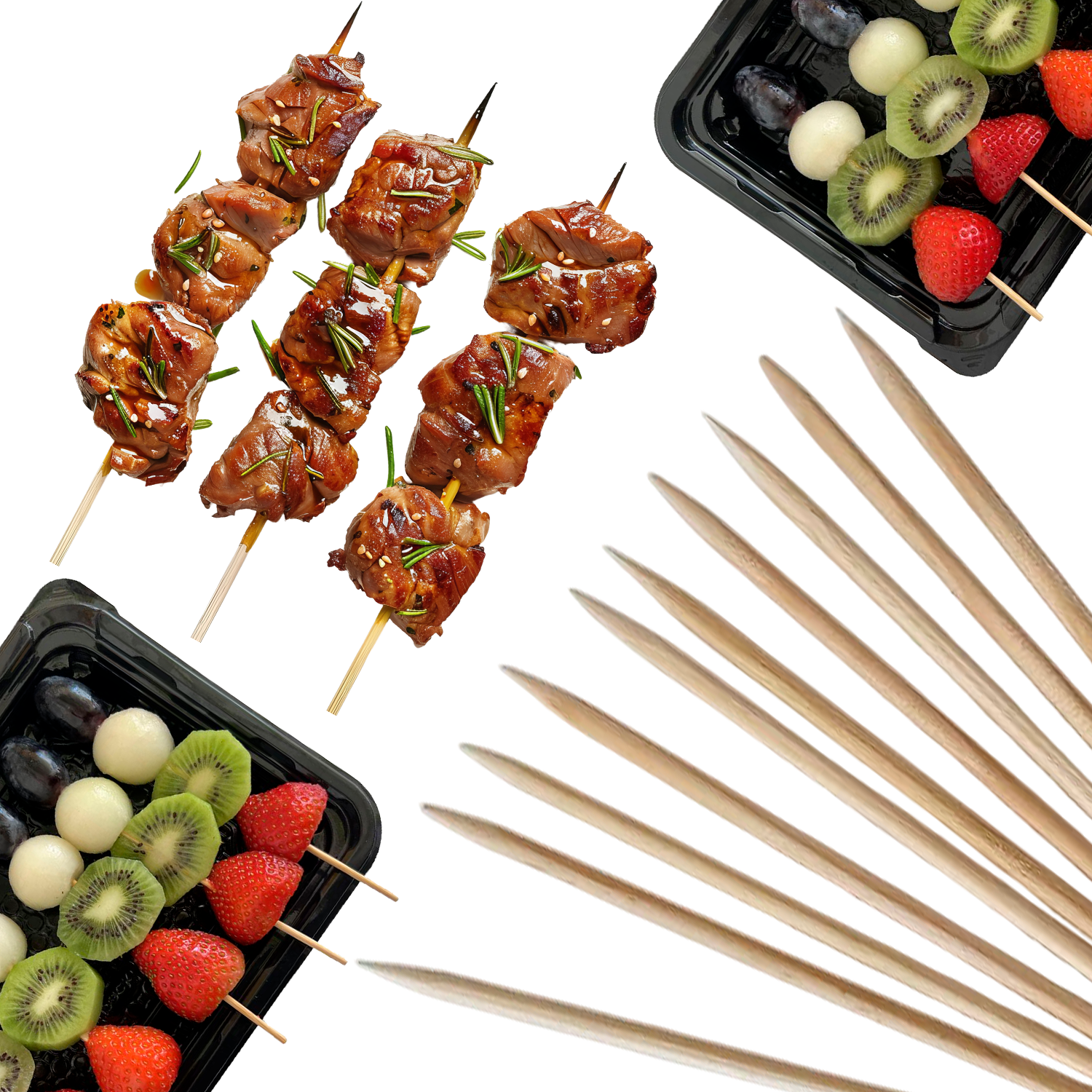 Además, estos palillos son versátiles y se adaptan a una variedad de aplicaciones, desde carnes y verduras hasta frutas y quesos.