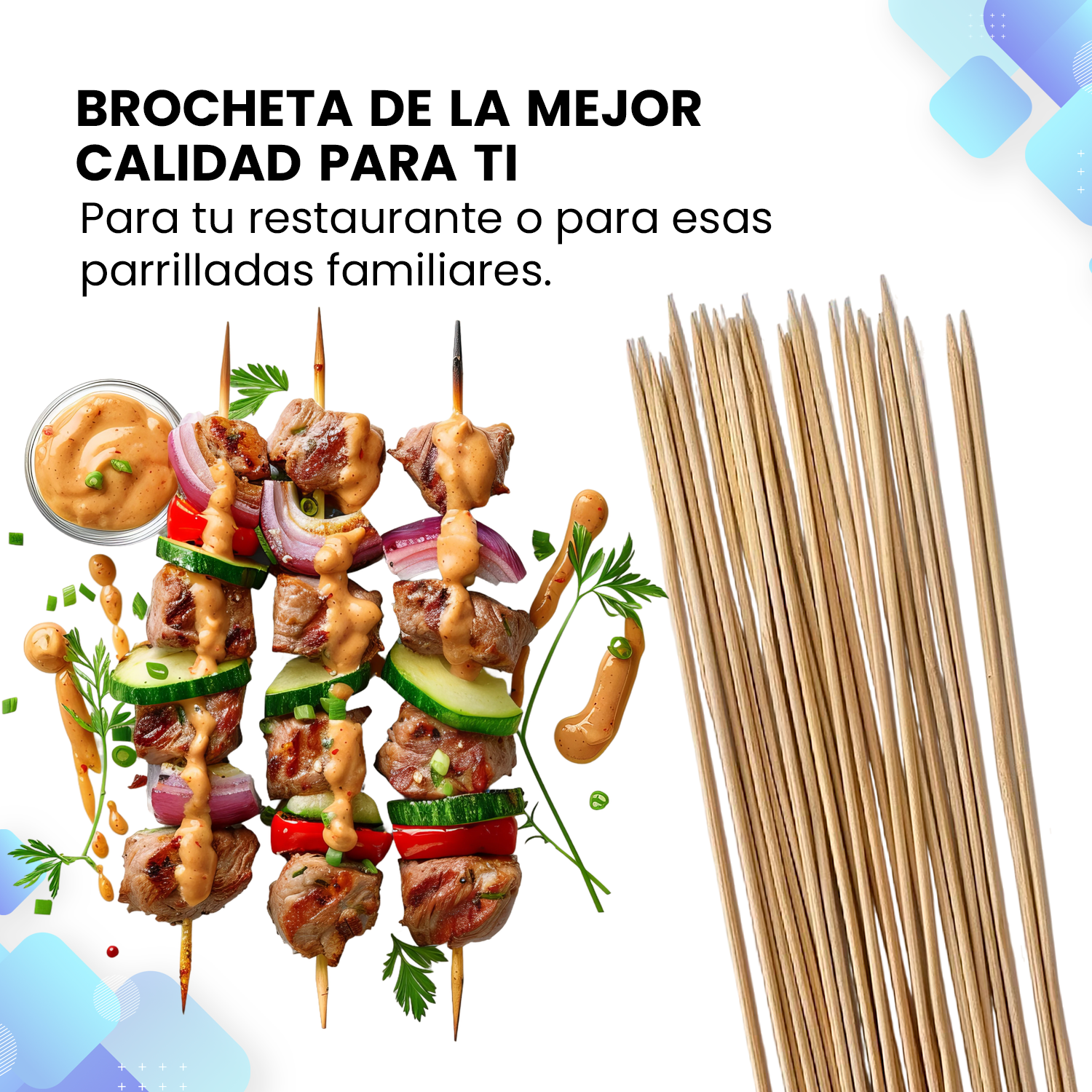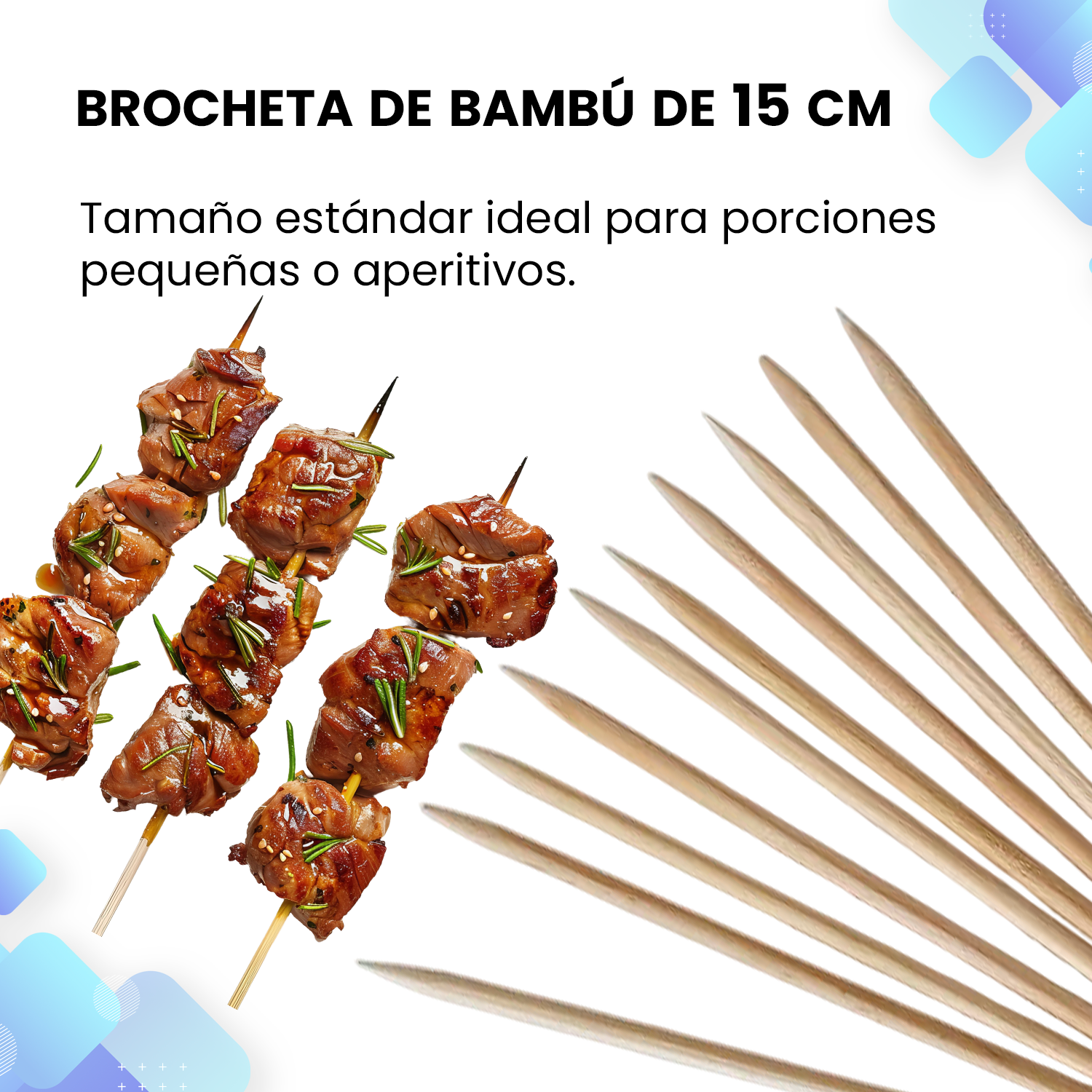 Diseñadas específicamente para facilitar la preparación de deliciosas brochetas, tapas y pinchos, su longitud de 15 cm es ideal para obtener porciones perfectas y una presentación profesional. El bambú, un recurso renovable, asegura que cada palillo no solo es fuerte, sino también amigable con el medio ambiente.