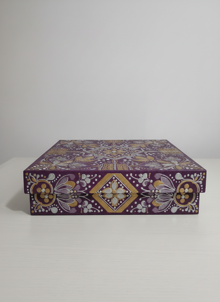 La tapa de la caja proporciona una protección adicional, manteniendo el contenido seguro y fresco. Su estética atractiva la convierte en una opción perfecta para presentaciones en eventos, regalos o simplemente para mantener tus dulces organizados en casa. Esta caja es una excelente elección para quienes buscan funcionalidad y estilo en el almacenamiento de sus delicias.