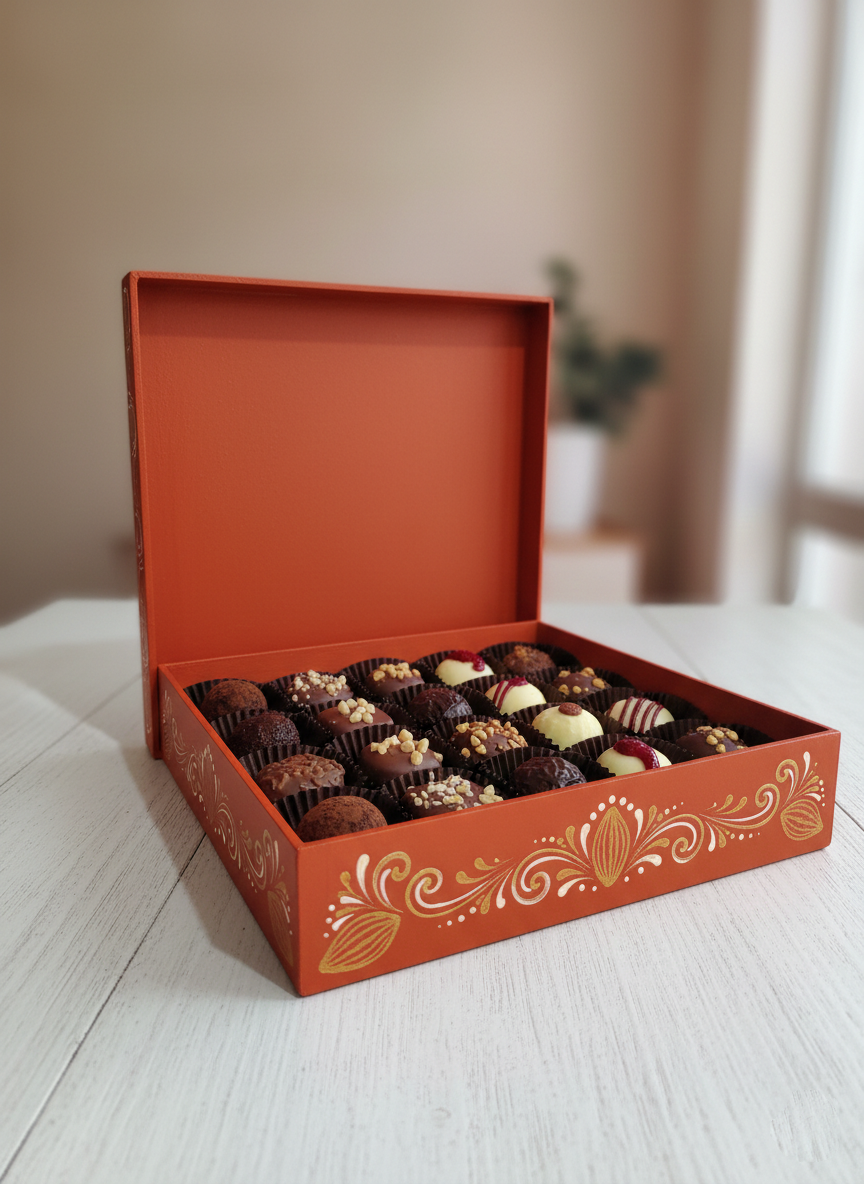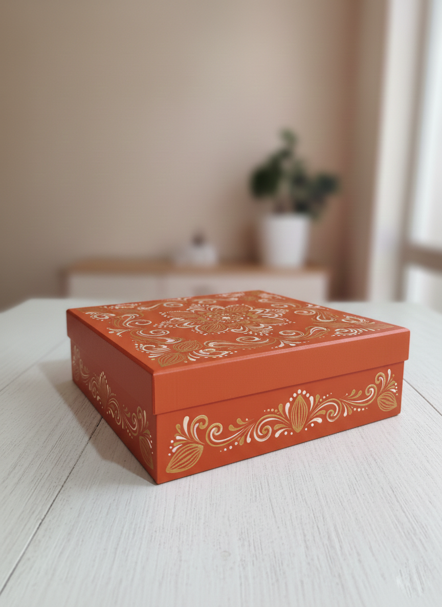 La tapa de la caja proporciona una protección adicional, manteniendo el contenido seguro y fresco. Su estética atractiva la convierte en una opción perfecta para presentaciones en eventos, regalos o simplemente para mantener tus dulces organizados en casa. Esta caja es una excelente elección para quienes buscan funcionalidad y estilo en el almacenamiento de sus delicias.