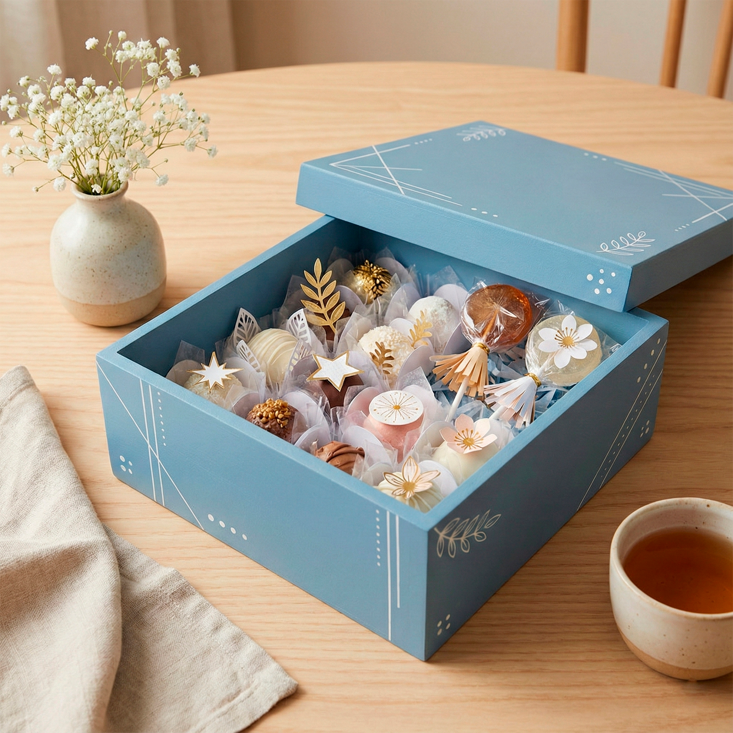 Ya sea para uso personal o como un detalle en eventos, esta caja es una opción práctica y estética que no puede faltar en tu colección de artículos de manualidades.