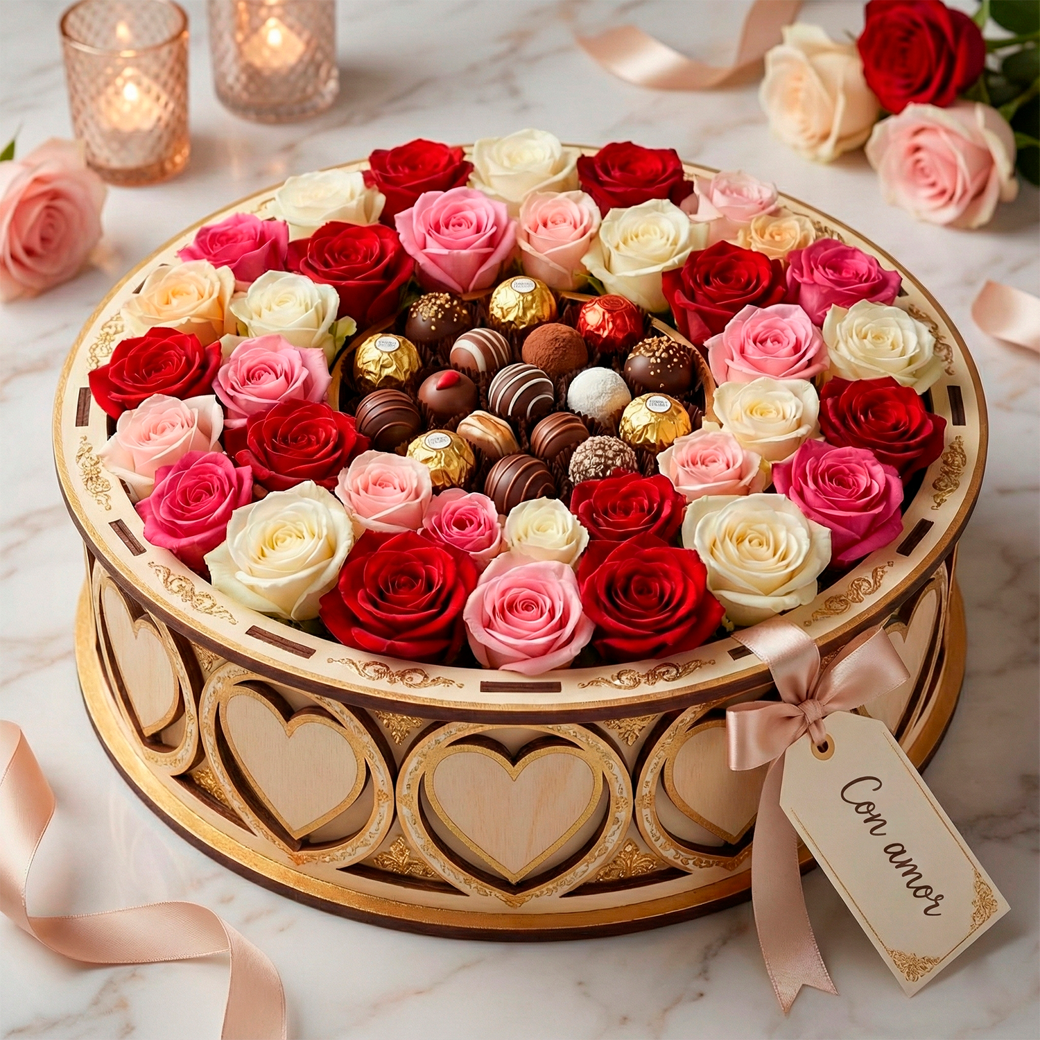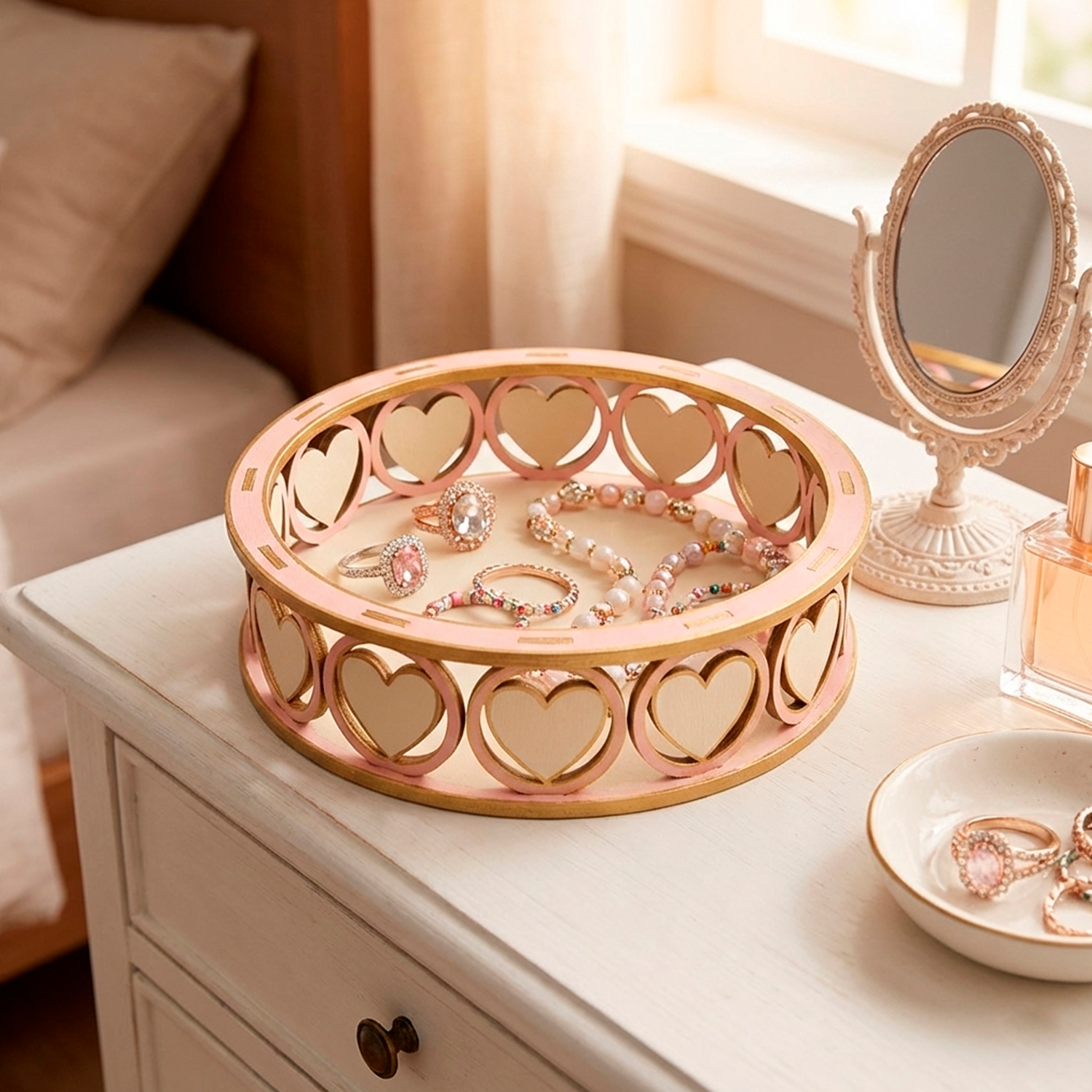 Su diseño elegante y romántico con grabados de corazones añade un toque especial a cualquier ambiente. Este producto es versátil y se adapta a diversas temáticas, desde celebraciones románticas hasta decoraciones festivas, convirtiéndose en un elemento esencial para quienes disfrutan de las manualidades.