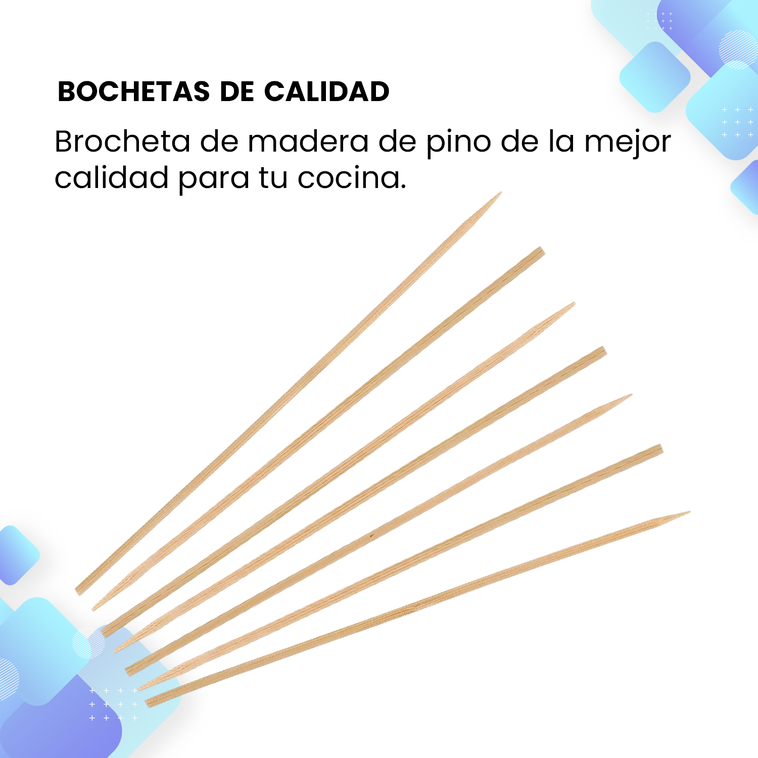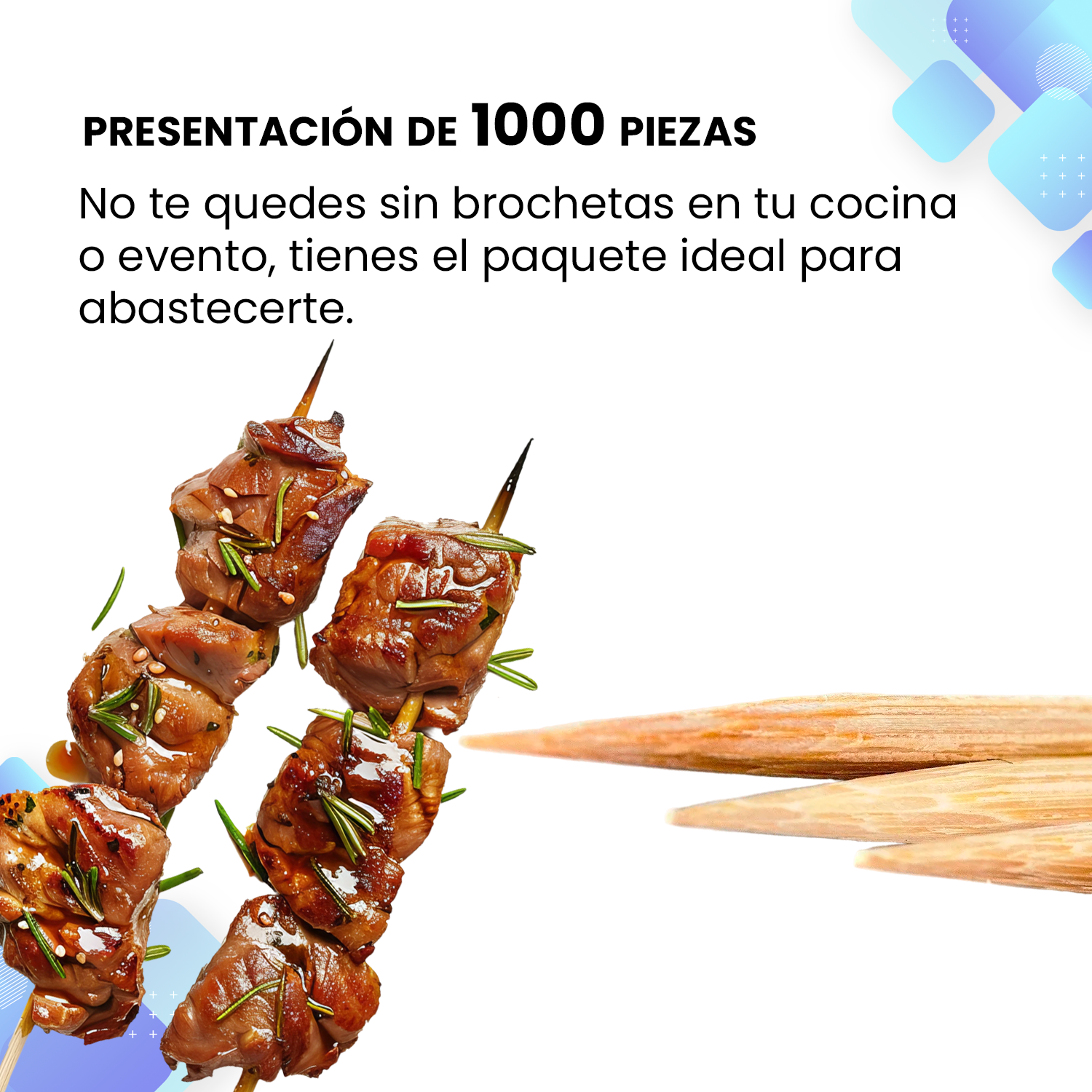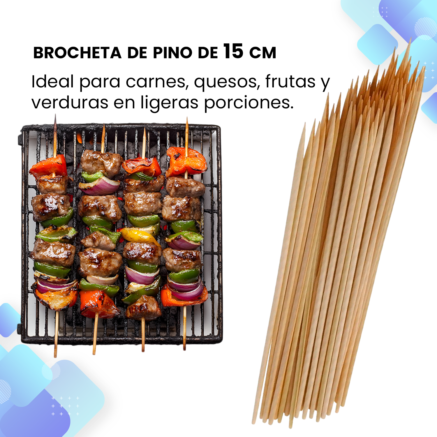 Cada palillo tiene la altura perfecta para brochetas, kebabs, y otros aperitivos, facilitando su uso tanto en casa como en catering de eventos.