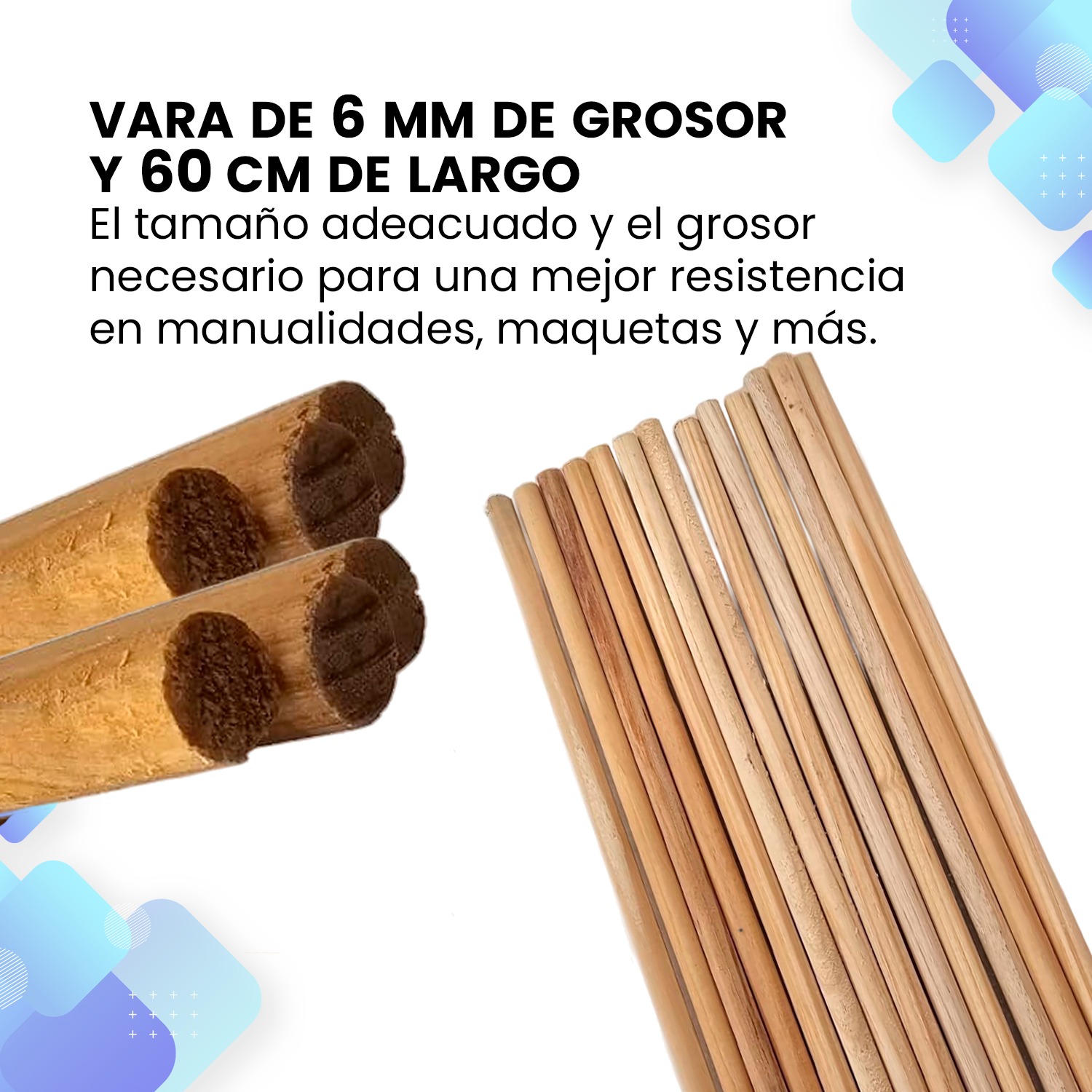 Palo Madera Vara Redonda Gruesa 6mm 60 cm 1kg