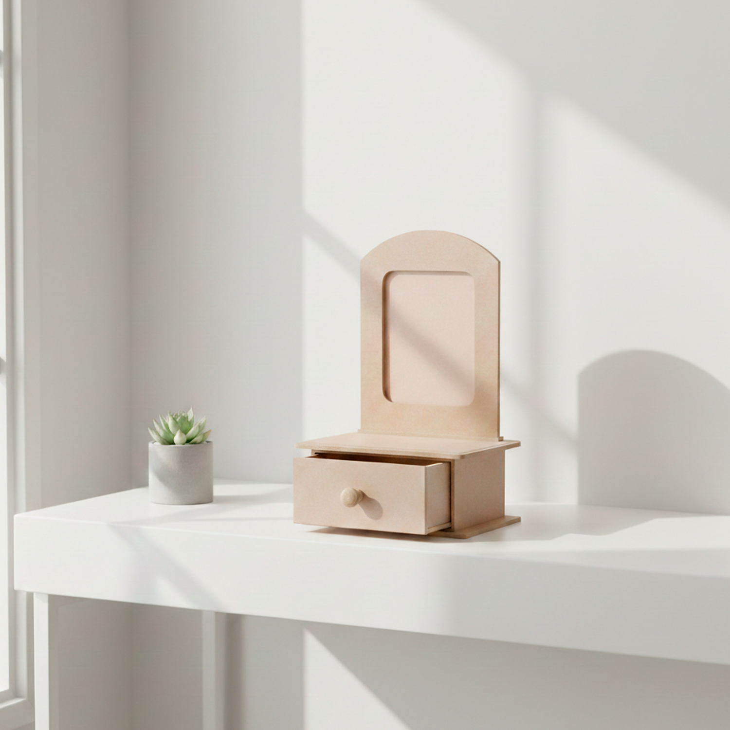 Este tocador no solo es un elemento decorativo, sino también una excelente opción para quienes buscan un regalo significativo. Su superficie lista para pintar ofrece la oportunidad de personalizarlo según tus gustos, haciendo de cada pieza algo único y especial.